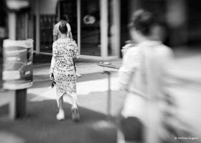 Street Fotografie lebt von nicht inzenierten Augenblicken. Mit meinen Fotos versuche ich Momente festzuhalten, die jeder sehen könnte und die doch meist unbemerkt bleiben. Ich möchte Geschichten erzählen, authentisch und ohne Worte. Den Betrachter lade ich ein, in das Bild einzutauchen und vielleicht eine eigene Geschichte daraus entstehen zu lassen. Wenn mein Foto Emotionen auslöst, ist es für mich gelungen.